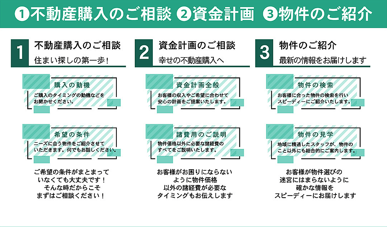 電話するのも勇気がいりますが、小さな不動産屋だからこそ出来るサービスをご提案していきます。